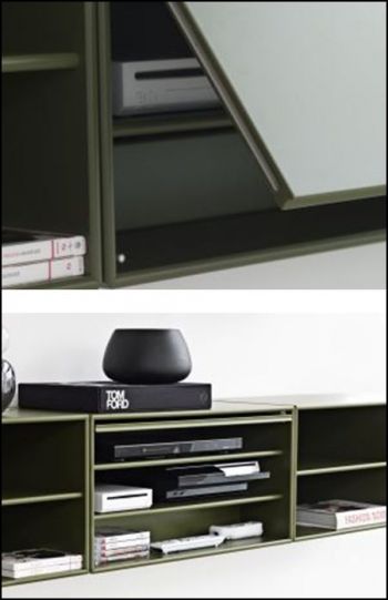 The TV/hi-fi units can be equipped with legs or plinths or can be mounted elegantly floating at the wall using the new wall mounting rails permitting cable passage. The units are available mid-May 2010.