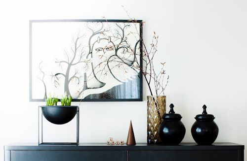Kubus skálin er minimalísk og hana er meðal annars hægt að nota undir ávexti, sælgæti, eða plöntu eins og myndin hér að ofan sýnir.