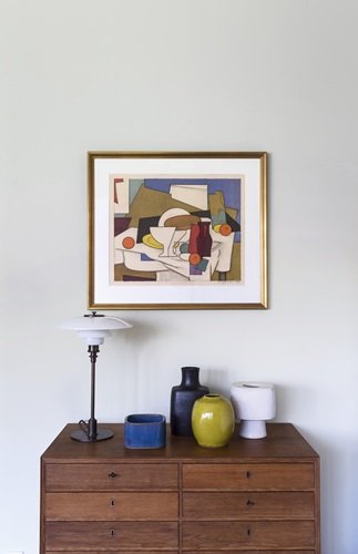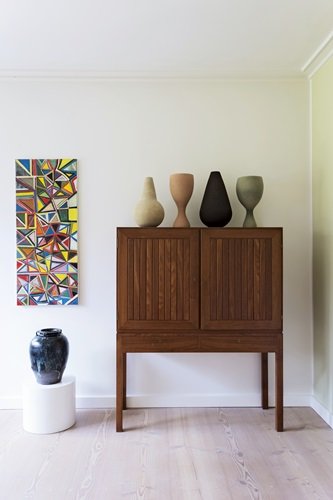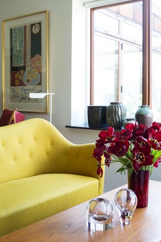 Á þessu einstaka heimili býr sannkallaður fagurkeri og ekta safnari. Húsögnin eru mörg hver eftir dönsku meistarana, Borge Mogensen, Finn Juhl og Hans J. Wegner. Í viðtali sem birtist með þessu innliti í danska Bo Bedre tímaritinu kom fram að eigandinn hafi mjög ungur að aldri hafið að safna hönnun og list, hann las bækur um listmuni og jafnvel um kínverskt postulín, og á 12 ára aldri hafi hann verið búinn að kaupa sér sína fyrstu postulínstyttu.
