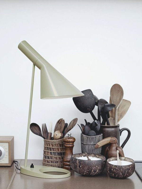 AJ lampinn var hannaður af Arne Jacobsen árið 1960 fyrir SAS Royal hótelið í Kaupmannahöfn. Sagan segir að hringlaga gatið á járnbotni lampans hafi upphaflega verið ætlað til að hafa öskubakka í, en reykingar voru afar vinsælar á þeim tíma sem lampinn var hannaður. AJ lampinn er klassísk eign sem verður bara flottari með hverju árinu sem líður.