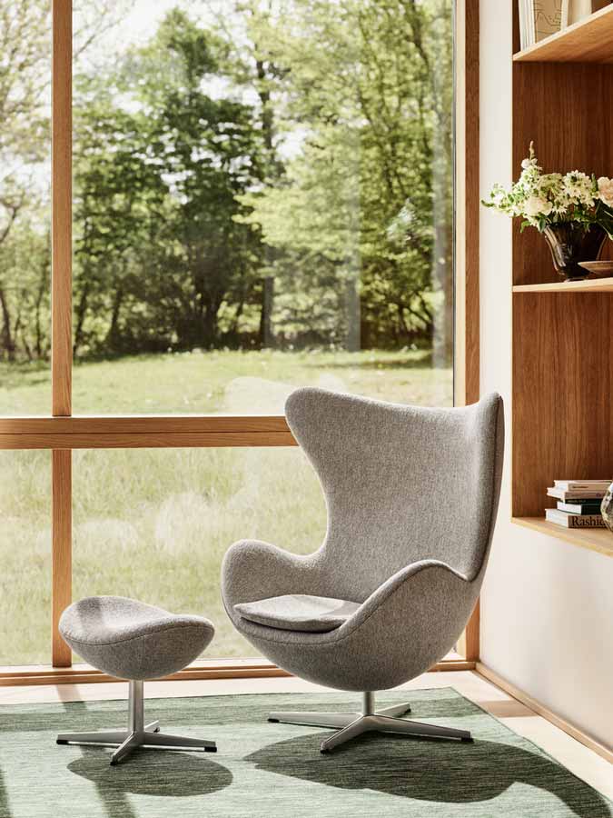 Design Choice 2023 vörulínan frá Fritz Hansen heiðrar Arne Jacobsen með sérstakri útgáfu af Egginu og Svaninum í takmörkuðu upplagi. Vandlega valið af hönnunardeild Fritz Hansen er Eggið og Svanurinn kynnt í hágæða Moss áklæði frá Kvadrat skreytt fínlegri leðurlíningu sem gefur húsgögnunum einstakt útlit.