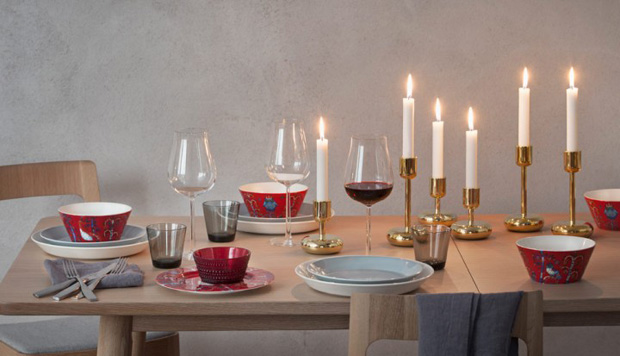 Smart blanda af Iittala Nappula og Iittala Festivo saman á borði frá HAY.