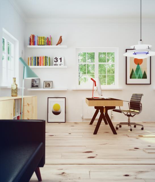„Borðið þurfti að vera einfalt í hönnun, hafa gott geymslupláss í skúffum, og hafa pláss fyrir tvo 23″ skjái, ásamt teiknibretti og fartölvu. Upphaflega ætlaði ég að smíða borðið sjálfur en áttaði mig fljótt á eigin takmörkunum í trésmíði. Ég ákvað að ef ég færi út í að gera borðið yrði það smíðað af fagmanni. TJ Innréttingar í Hafnarfirði hafa tekið það að sér að smíða borðið og kom það betur út en ég hefði nokkurn tímann trúað,“ segir Hjalti. Hann hefur haft nóg að gera síðustu mánuði en hann var síðasta haust ráðinn í að mála risastór málverk í nýjum höfuðstöðvum Alvogen. //Sjá betur viðtal á Smartlandi á mbl.is -hér.