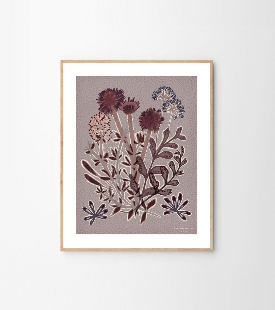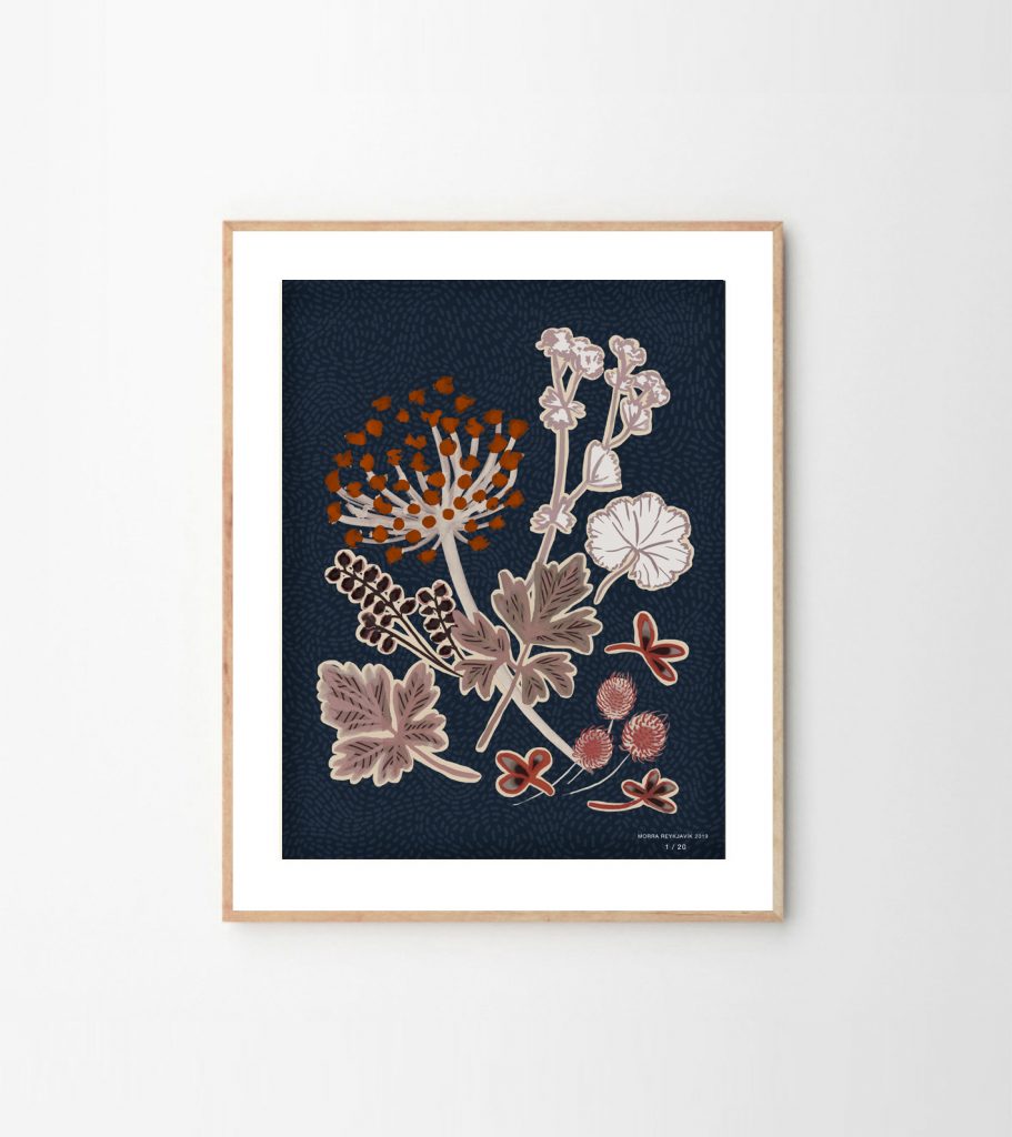 Fyrsta lína Morra kom út fyrir jól og samanstóð af silkislæðum með myndskreytingum úr íslenskri flóru. Hið alþjóðlega „blómaprent“ var heimfært með því að nota íslensk smáblóm í bland við harðeskjulegar jurtir og slæðinga sem mynduðu skrautlega blómasveiga. Fyrir Hönnunarmars í ár verður þetta myndmál þróað áfram í prentverkum í takmörkuðu upplagi sem verða sýnd ásamt slæðunum.