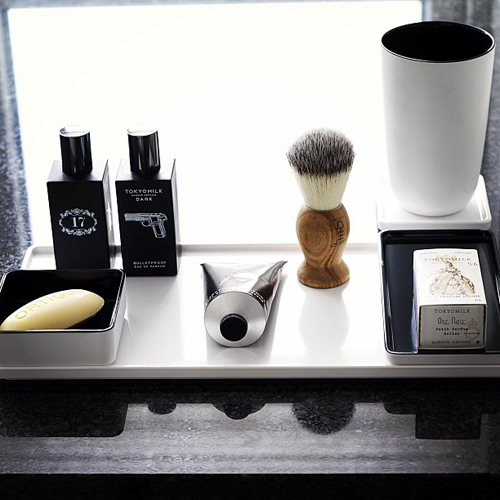 Á baðherbergið undir sápu, einnig sniðugt til að leggja frá sér skart.