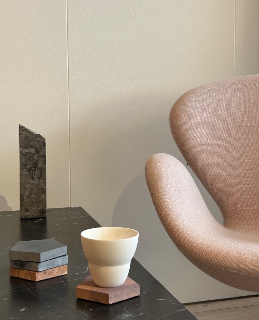 „Á sýningunni á Hönnunarmars 2024 leitumst við eftir að fullgera hið arkitýpíska form, innan þess tilraunakennda leiksviðs sem hringrásarefnið gefur; að vekja löngun til þess að taka það með sér heim, til áframhaldandi ljóðrænna upplifana í samspili rýmis og efnis. Við höldum áfram að kanna hið arkitýpíska formtungumál og það hvernig formheimur hlutarins rímar við endurnýjuð efni og leikandi form, í ljóðrænu samtali við rýmisvitundina.