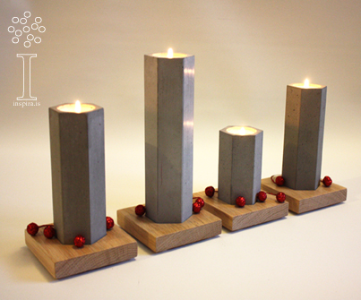 “Köld grá steypan minnir óneitanlega á kalt bergið sem mýkist og lifnar við með hlýrri birtu kertaljósa. Þegar hlý eikin veitir kaldri steypunni undirstöðu undirstrikast enn frekar þessi áhugaverða blanda af köldum og hlýjum efnivið. Náttúrulegur efniviðurinn gerir það að verkum að enginn stjaki né platti er með öllu eins heldur fá náttúrulegir eiginleikar steypunnar og eikarinnar að skína í gegn í öllum sínum fullkomna ófullkomleika.”