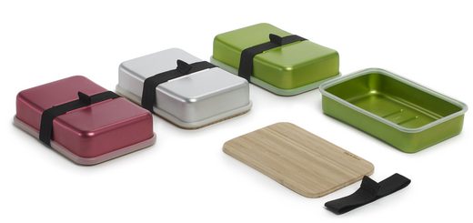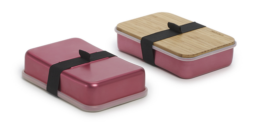 Nýju nestisboxin frá BLACK+BLUM eru stórsniðug en líka smart. Lokið sem er úr bambus er hægt að nota sem bretti til að skera meðlæti á, t.d. epli og tómata, einnig virkar það sem hinn fínasti diskur. Nestisboxið er úr áli og er því einstaklega létt og kemur það í þremur litum, silfur, grænum og bleikum.
