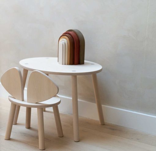 The toddler Set is design classic with a cute animal-inspired touch. Add a toddler space to the home where your child can be close by, which you can leave out when the guests arrive and after the children go to bed. The Mouse Set is an iconic wooden desk and table for all toddlers. With its simple and modern feel, it both delights its miniature users and is functional in the home. Give your child a friendly seat and table space in their size amongst the adult interior. Support your child’s playfulness, curiosity, and creativity with a place they can call their own. Every piece of furniture is produced in veneer with the highest quality of natural wood. Combine functionality and design in your home with a space for your 2-5-year-old. / Danish design by Nofred, made in Europe.