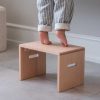 The step stool is 23.5 cm high and designed to stay stable and secure on the floor without sliding under the bed when the child steps onto it. You can apply the included silicone stickers to make the stool more slip-resistant and protect the floor. Two handles carved into each side make it easy to move around, and its simple, classic design perfectly complements the Sebra Bed.