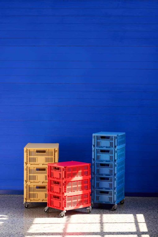 A useful lid that fits on top of HAY’s medium and large Colour Crates, the Colour Crate Lids enable multiple crates to be stacked on top of each other while concealing the contents. Made in powder coated steel in colours that match the crates, the lids can be used to optimise storage in the bathroom, kitchen, and most other rooms in the home.