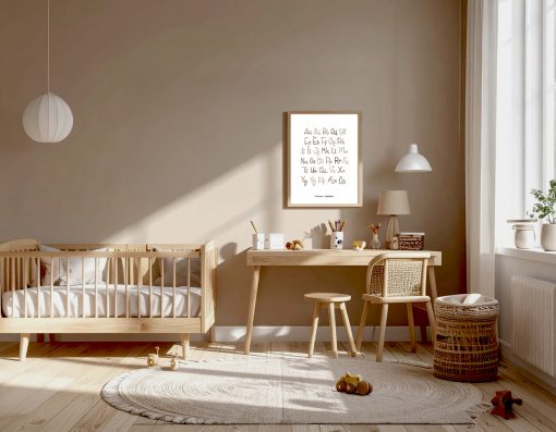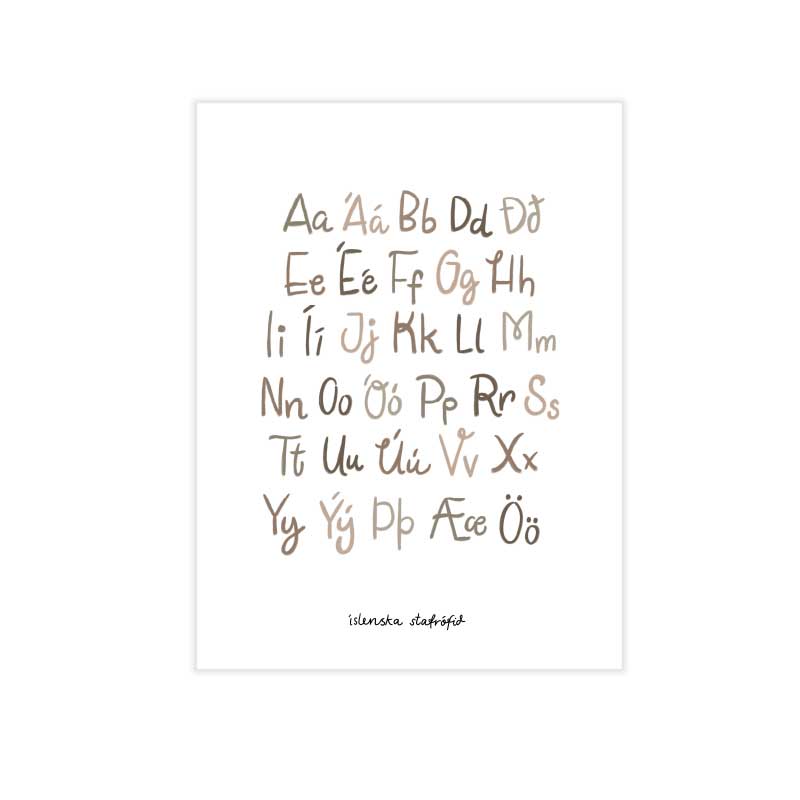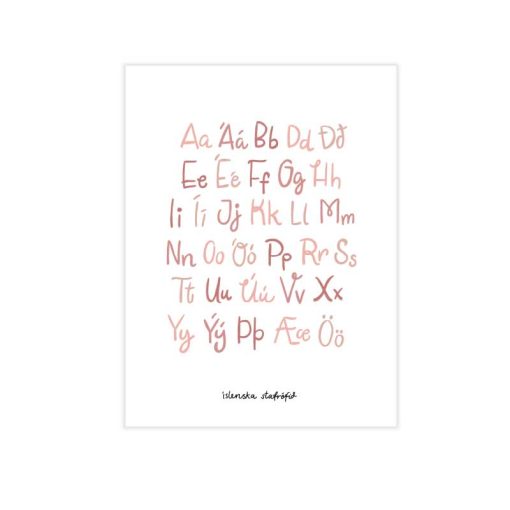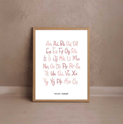 Handskrifað letur Krot dagsins með íslensku stöfunum. Fallegt í barnaherbergið og hjálpar börnunum að læra stafina á sinn hátt. Hægt er að velja um tvo liti, bleikan og brúnan.