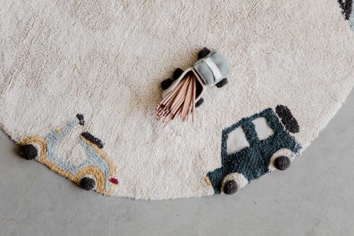 Ready for a ride around the Eco-City? Let your child’s imagination take the wheel on this soft, round washable rug, circled by e-vehicles and bikes, sporting pom-poms as wheels. It comes in a convenient size to set up play anywhere around the house. The perfect choice to decorate the kids’ room or nursery in style, matching the Eco-City theme collection. So, who’s in for some vroom-vroom fun?