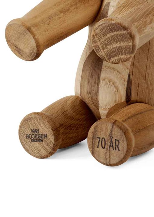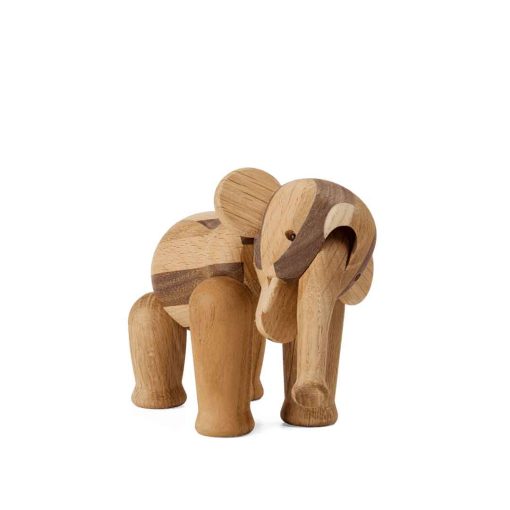 In 2023, Kay Bojesen’s iconic and beloved Elephant celebrates its 70th anniversary. We are celebrating the occasion with a Reworked Elephant – a special edition created from a wonderful mix of different wood types, such as teak, walnut, oak, ash and maple – all from surplus and residual wood. With a focus on upcycling and minimising resource waste, the Reworked Elephant has a new, modern and sustainable dimension, so that it not only acknowledges the past but also the future. With respect for the environment, the Reworked Elephant is made from residual wood, which means each Elephant will therefore look different depending on which types of wood are left over on the day they are produced. In other words, we cannot guarantee which types of wood each of the Reworked Elephants are made of. But we can guarantee that every single Elephant is even more unique than the original classic, if that’s possible. The Mini Reworked Elephant measures 9 cm in height, has a 70th anniversary stamp under one foot and comes in a special, wooden anniversary box.