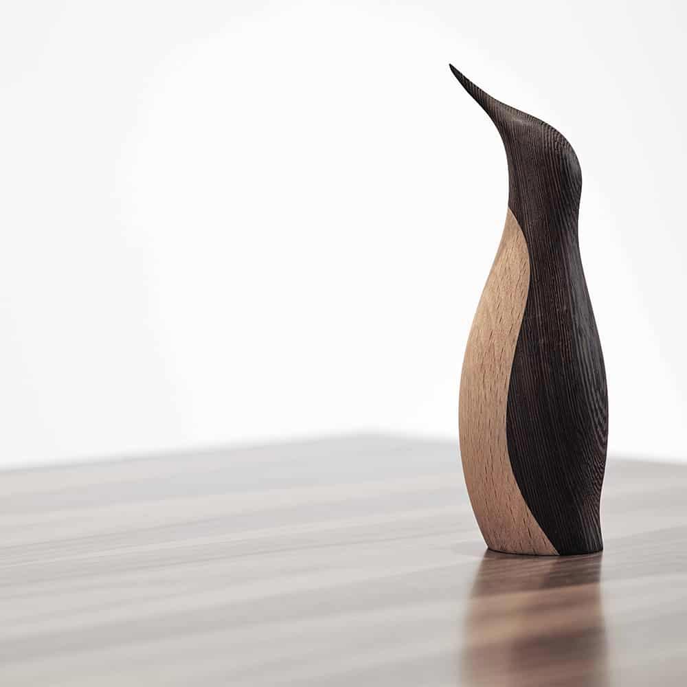 Hans Bunde originally created Penguins in 1954; one for each of his sisters. We are now proud to introduce the Penguin in a family of two sizes, all ready to move out in to the world. Penguin is made in hand painted beech wood. The painted back represents the gracious plumage of the bird whereas the unpainted chest reveals the natural qualities of the wood.