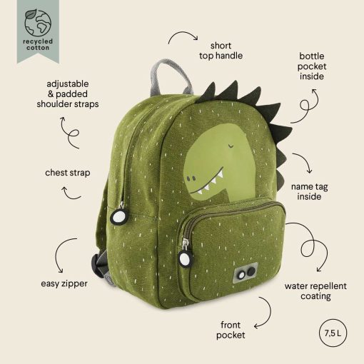 The backpack has a big compartment and a little front pocket, where you can nicely store a little snack or so. The main and front pocket have a zipper that allows children to easily open and close the backpack themselves.