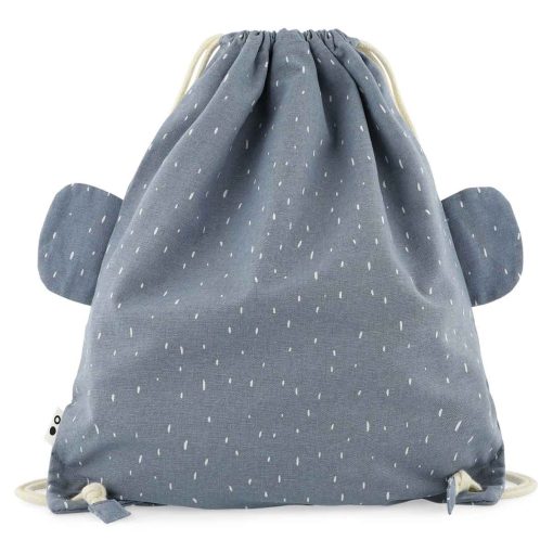 A fun and handy gym bag featuring our animal friends, which you can also use as a swimming bag thanks to its water-repellent coating. The floppy ears provide a nice playful detail. Use the 2 handy drawstrings to easily open and close the gym bag. There are a name tag and a small pocket inside; the latter to keep some small items, money or a membership card.