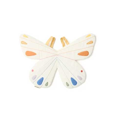 “Butterflies drift on soft breezes, their delicate wings painting the air with gentle motion.” These butterfly wings are designed to be worn on the back with elastic shoulder straps, making dress-up simple and comfortable. The wings are padded to hold their shape during play, and the embroidered details add stability and texture. Dress-up play helps children explore their creativity and storytelling skills, and wings like these encourage active movement as they pretend to “fly.” This simple design makes it easy for children to put on by themselves, supporting independent play.