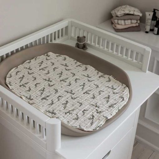 Each mat is made from six layers of muslin and features a reversible design: Powder Rose on one side and the beautiful Powder Blossom print on the other. The soft fabric makes changing moments more comfortable for your child and serves as an extra layer between baby and changing cushion.