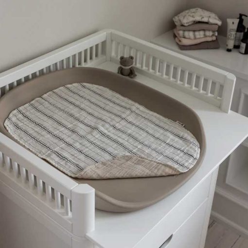 Each mat is made from six layers of muslin and features a reversible design: Seabreeze Beige on one side and the beautiful Cream Stripe print on the other. The soft fabric makes changing moments more comfortable for your child and serves as an extra layer between baby and changing cushion.