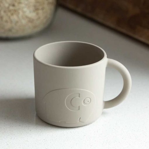 Baby cup with handle in our new silicone feeding series, featuring Fanto the elephant. The cup’s handle is easy for small hands to hold onto and the soft material feels nice to the touch.