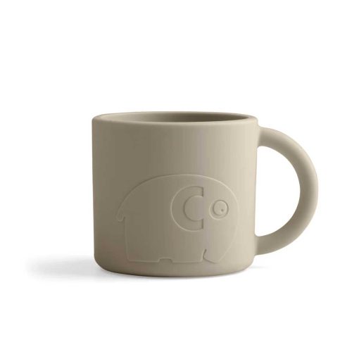 Silicone cup with a practical handle designed for the baby’s little hands to hold onto. The cup is made of flexible silicone that will not break if the child drops it. Sebra’s classic elephant, Fanto, adorns one side of the silicone cup in the colour Jetty Beige. A lid with a spout can be purchased separately.