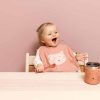 Two colourful spoons with a friendly face to enjoy your meal! These are the ideal spoons to feed your child solid food. The spoons are also great for children who are learning to eat on their own. There is a stainless steel part integrated inside the spoon for sturdiness and to keep it straight. That is why this item is an exception to the rest of the silicone range and cannot be used in the microwave. Silicone is great for use in the kitchen. It does not break and is safe to use in the microwave, dishwasher, freezer and oven. Even with intensive use, the tableware will stay in good shape and can easily be passed down to little brothers, sisters or friends. The 100% food grade silicone complies with all European safety standards.