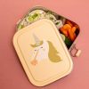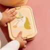 Kids can operate this lunch box by themselves, since it is very easy to open and close. The small lunch box easily fits 4 delicious slices of bread. The large lunch box has a fixed divider, so your little one can enjoy a healthy snack on the side.