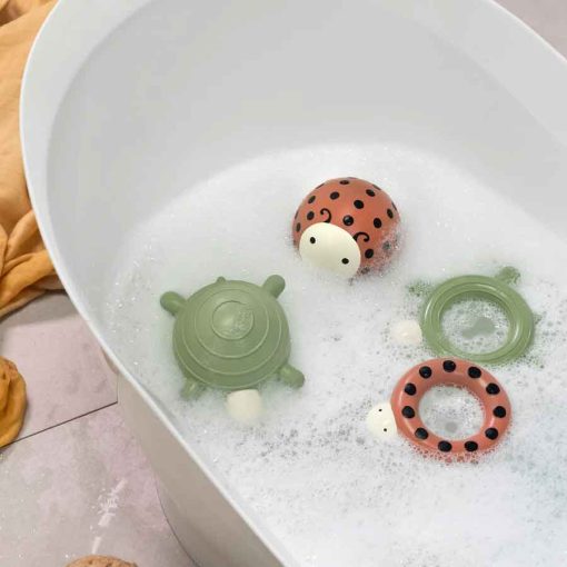The fun ladybird bath ball features black dots slightly raised from the surface, making it easy for little ones to hold on to. Roll, throw and spin the ball around and stimulate your child’s motor skills and coordination while you play.