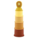 Higher…higher…whoops! Down they tumble. Made of soft-touch silicone, these stackable cups are beautifully coloured and cleverly shaped. Some have holes to create different water floats, others are closed to fill up and pour with. They also double up as pouring cups – perfect for rinsing baby’s hair.