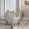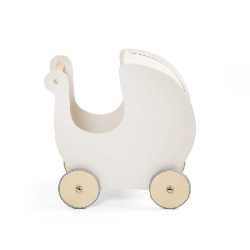Classic and stylish wooden doll pram/walker in certified wood with rubber wheels, shown here in the colour classic white.