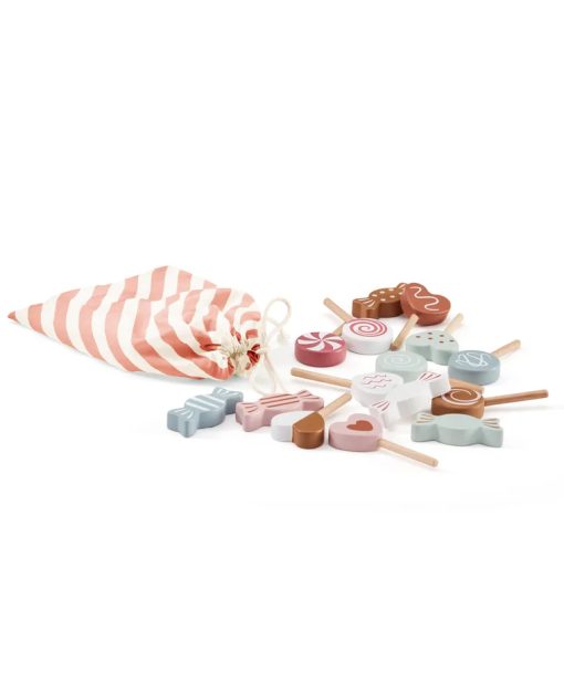 Wood Play Candy, made from wood. A total of 15 candy pieces. Includes a storage bag that measures 15 x 20 cm.