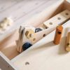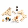 The bolts and nuts are made from natural and painted beechwood, the beams are made of plywood.