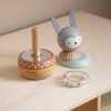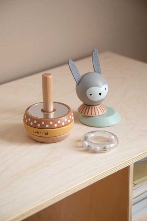 The stacking hare Siggy is a fun stacking toy, primarily made of wood and with both a mirror and a rattle from Sebra’s Woodland collection.