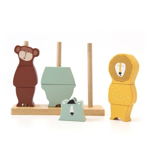 Three animal friends to have endless fun with! Make the craziest combinations or try to puzzle the three animals back in their original shape. Each little one will enjoy the combination of imagination and test of their fine motor skills when trying to place the blocks on the stacker.   The stacker is made of 100% FSC© certified wood. All paints on this product are water-based, safe for children and non-toxic.
