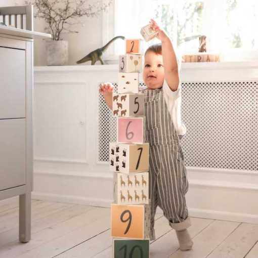 The stacking boxes come in different sizes and have the numbers 1 to 10 printed on them. For children learning to count, there’s plenty of fun in stacking the boxes in the correct order, only to knock them down and start over again. The stacking boxes can also be nested inside each other for easy storage.