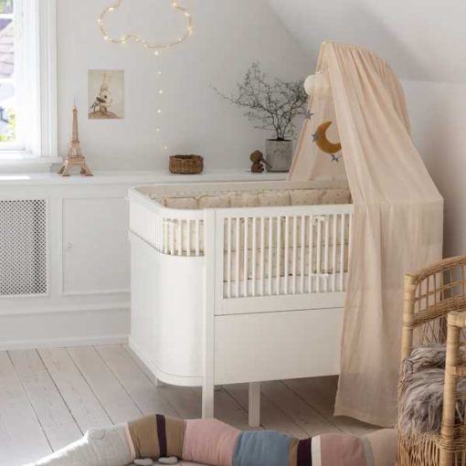 The canopy, designed in Denmark, is ideal for creating a sheltered and calm sleeping environment for your child. It is available in several beautiful colours that match Sebra’s other textiles, such as bedding, sheets, and bed bumpers.