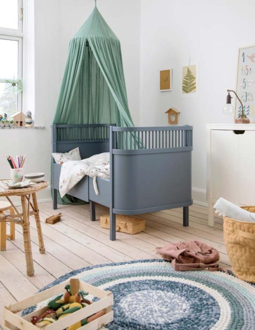 The bed is made from certified wood and carries the EU Ecolabel, among other certifications. The height-adjustable base can be set at the highest position for newborns, providing a comfortable height for placing or lifting your baby from the crib.