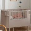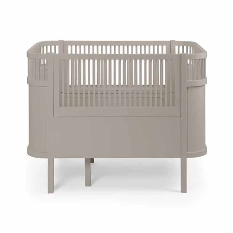 Before your child shows signs of rolling over or sitting up, the height-adjustable base should be lowered to the bottom position. The lowered base and iconic slatted sides ensure a safe sleeping environment for your child during the first years.