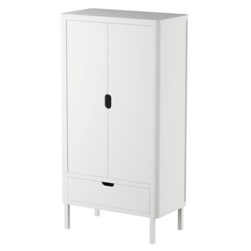 The Sebra Wardrobe is an elegant and functional wardrobe for the children’s room, which comes with a drawer, three shelves, a clothes bar and respectively one or two doors – both versions come in white.