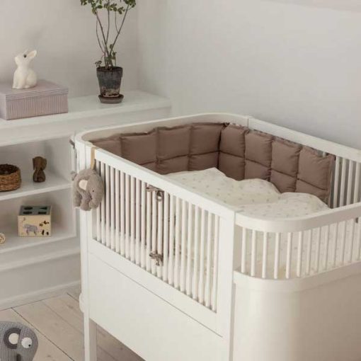 Luxurious, thick baby bumper made from hypoallergenic kapok filling and certified organic cotton in the colour Jetty beige, perfectly matching the Sebra Bed, Baby & Jr., in Jetty beige. It’s ideal for creating a safe and cosy sleeping environment for your little one, ensuring your child sleeps soundly.