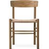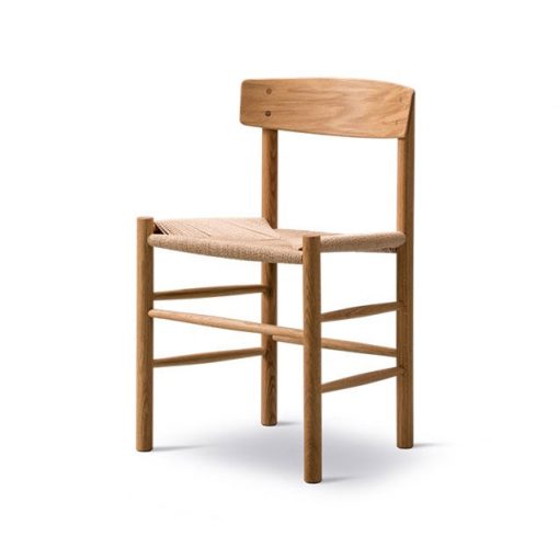 J39 stóllinn var hannaður árið 1947 af Børge Mogensen. Stóllinn er úr olíuborinni eik með handofinni setu úr náttúrulegum pappa.
