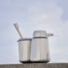 The Vipp toothbrush holder is pure bathroom functionality. With a removable rubber inner section, the toothbrush holder separates the toothbrush from the toothpaste. A non-skid rubber base protects surfaces. Made from either powder-coated steel or stainless steel.