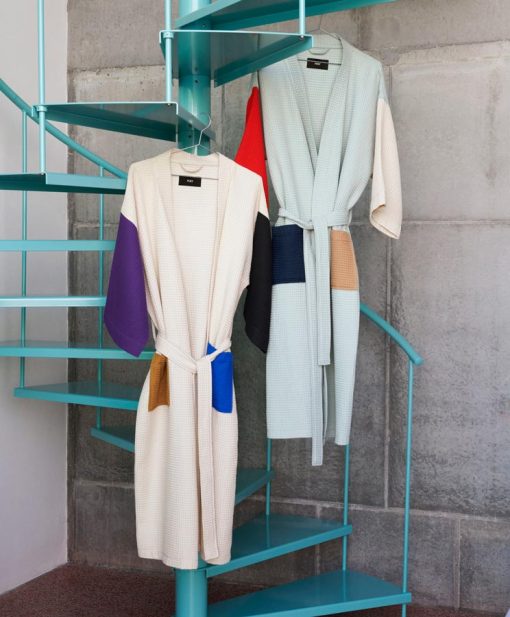 The Waffle Bathrobe is a series of versatile bathrobes in soft and durable OEKO-TEX® cotton-blend with a distinctive three-dimensional waffle texture. Featuring a relaxed shape, pockets and matching tie belt, it is a stylish and functional design that can be used around the house, on the beach or by the pool. Available in different mono-colour options or in a multi-coloured variant with a modern colour-blocked design.