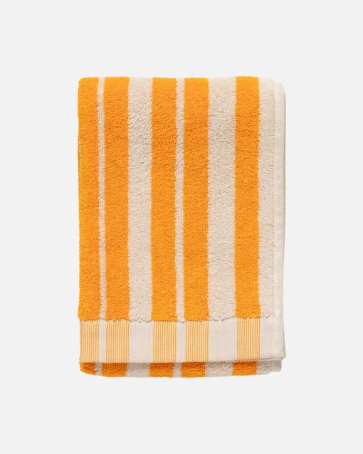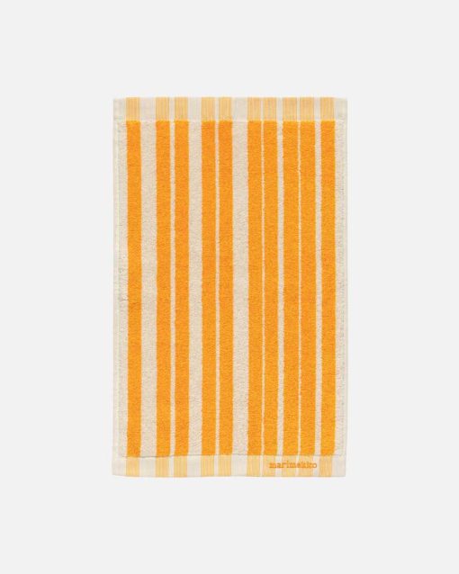 The towel is made of cotton terry, which contains 65% organic cotton and 35% recycled cotton. The recycled fibers originate from a closed loop production, where textile waste generated in the manufacturing of Marimekko’s collections is used as raw material for new Marimekko products.