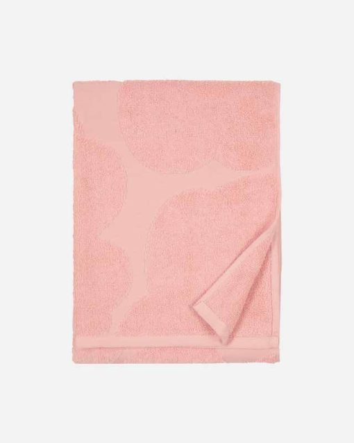 The embossed Unikko pattern hand towel is made of organic cotton terry. The reverse side of the towel is even.