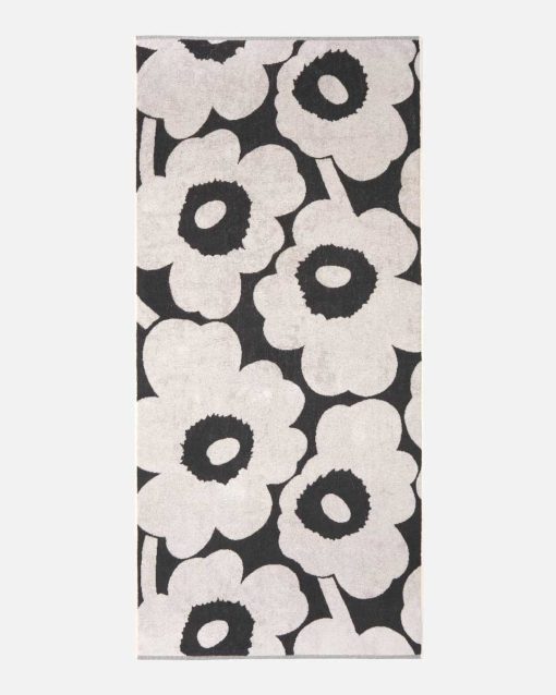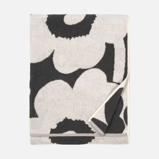 The Unikko pattern bath towel is made of organic cotton terry. The colors are opposite on the other side of the towel.