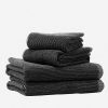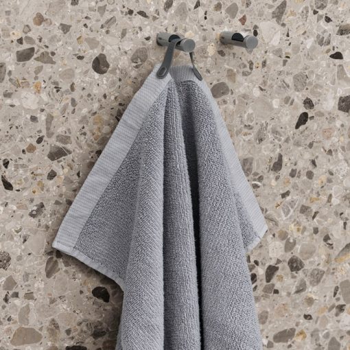 The Vipp towels are woven in a combination of viscose rayon (bamboo) and organic cotton. Organic cotton adds softness, while viscose rayon lets the towels absorb more water and dry faster. Available in three sizes –  small,  medium and large towels.