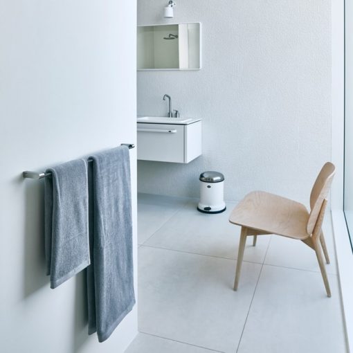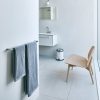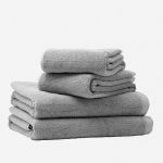 The Vipp towels are woven in a combination of viscose rayon (bamboo) and organic cotton. Organic cotton adds softness, while viscose rayon lets the towels absorb more water and dry faster. Available in three sizes –  small,  medium and large towels.