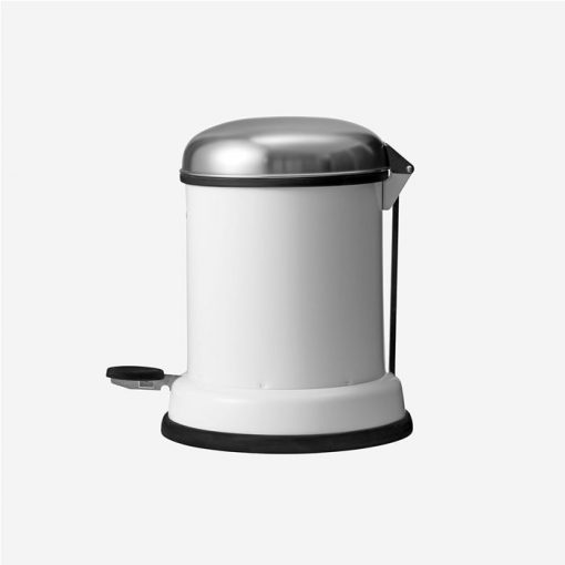 The Vipp14 pedal bin is a smaller trash can well-suited for bathrooms. This pedal bin is equipped with a removable inner bin, a lid that ensures air-tight closure, and a damper mechanism that provides smooth closing of the lid. A rubber ring at the base protects floors.